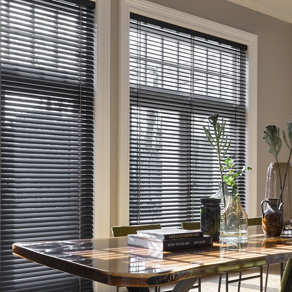 Vi garanterer at våre persienner passer perfekt til oppgitte mål, og lover at hver persienne betjenes lett og presist. 15, 25 og 35 mm kan leveres med motor, kjedetrekk eller snortrekk, mens 50 mm leveres med snortrekk eller motor. I rom med ulike vinduer behov for solskjerming kan det være fint å kombinere lameller in noen vinduer og persienner i andre (se bilde av kjøkken).